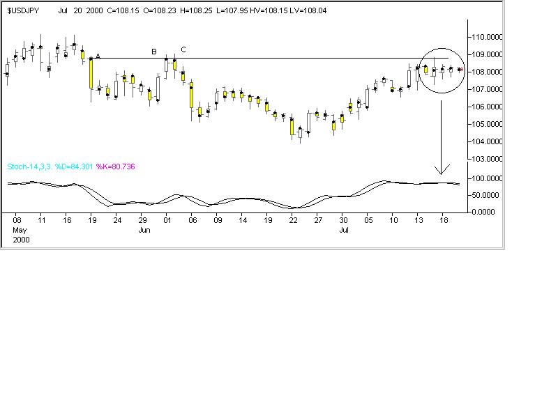 Yen. As can be seen, the Stochastics is in the overbought zone when