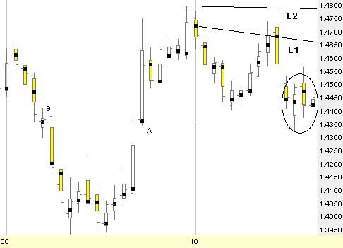 the circled bars. For three days in a row, price attempts