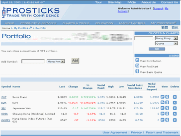 Maintain your own portfolio, track ProSticks Support and Resistance, and view the lastest quote for any trade.